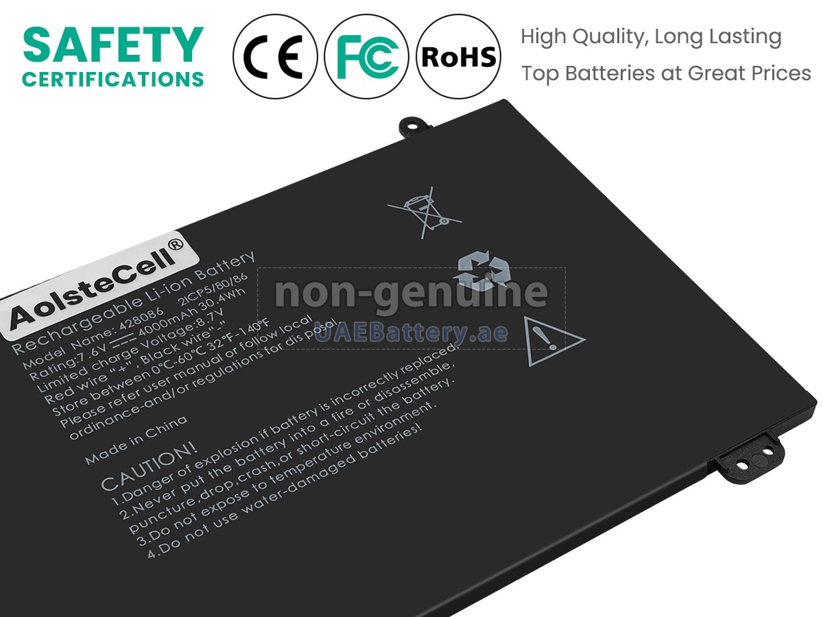 A: All of the batteries sold on UAEbattery are genuine OEM replacement batteries. They use the high quality battery cells and smart chips from famous factories, and the actual use effect is the same as the original battery, even higher than the original. In this way, the brand premium is eliminated, and the quality is not compromised. In fact, the original 428086 batteries are also assembled using different third-party accessories, but in the end, it affixed its own brand trademark on the battery. At UAEbattery, you can buy higher quality products at a more affordable price!