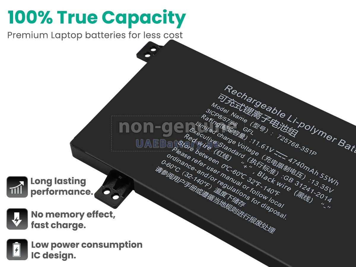 A: All of the batteries sold on UAEbattery are genuine OEM replacement batteries. They use the high quality battery cells and smart chips from famous factories, and the actual use effect is the same as the original battery, even higher than the original. In this way, the brand premium is eliminated, and the quality is not compromised. In fact, the original 725768-3S1P batteries are also assembled using different third-party accessories, but in the end, it affixed its own brand trademark on the battery. At UAEbattery, you can buy higher quality products at a more affordable price!