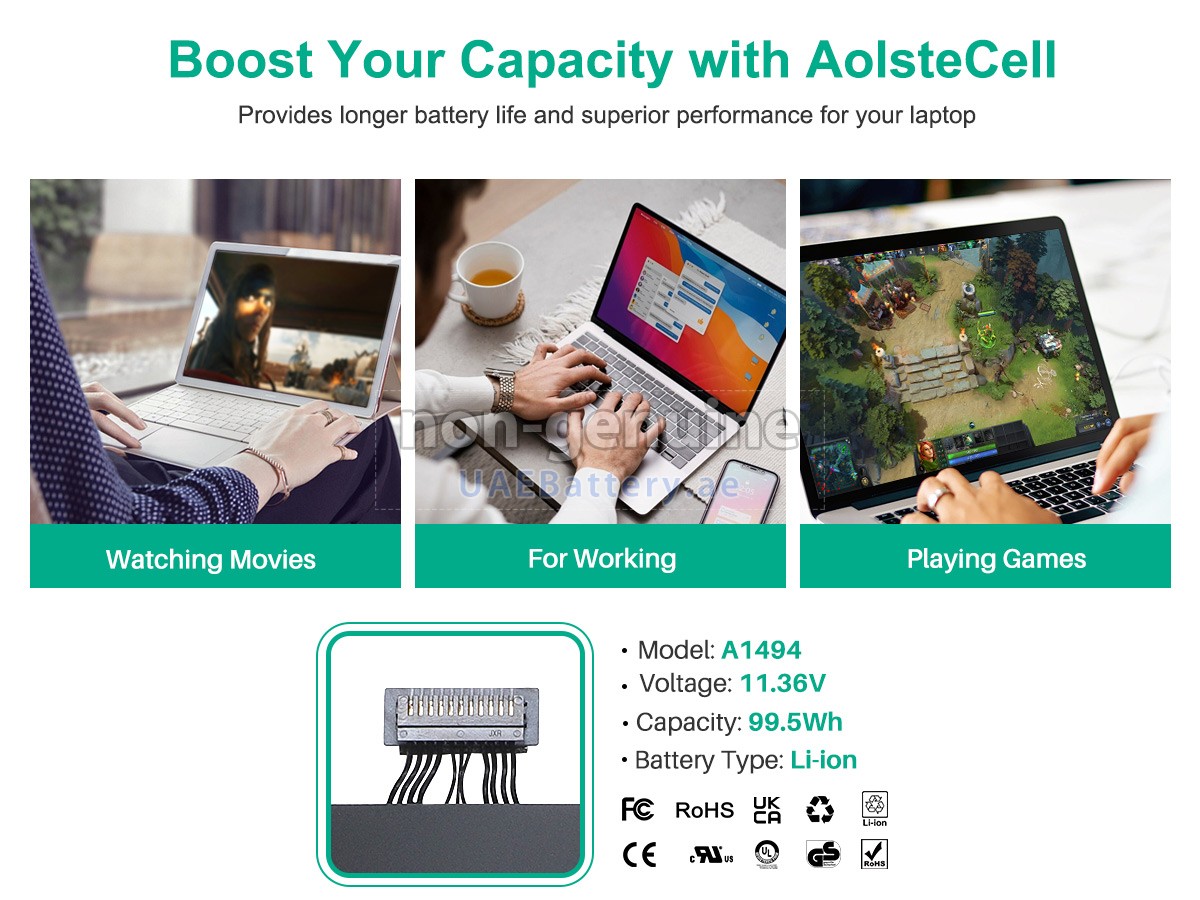 This battery replacement for Apple A1398(EMC 2674),A1398(EMC 2745),A1398(EMC 2876),A1398(EMC 2881). 6 cells | 99.5Wh For Apple ME293LL/A