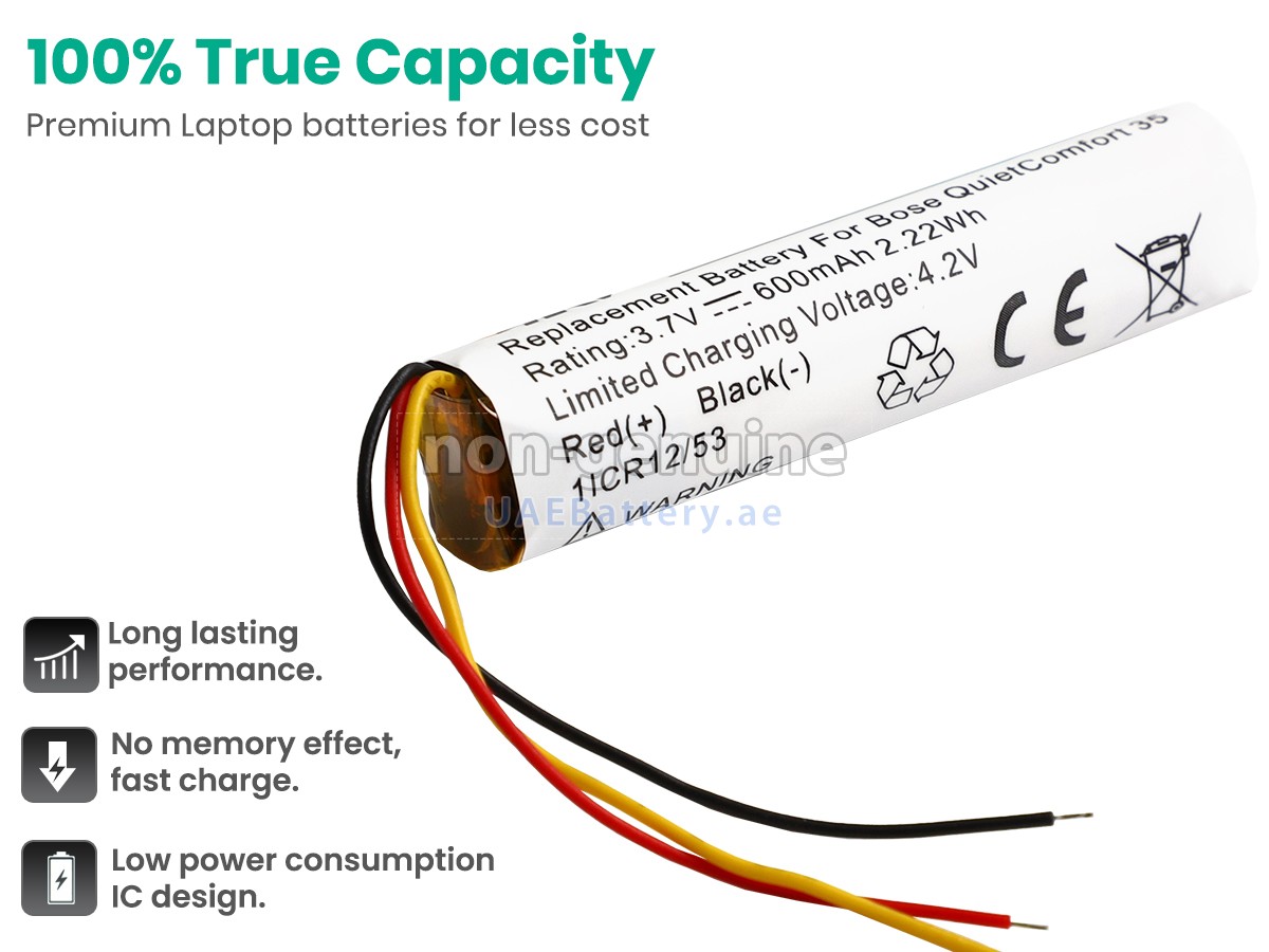 This Bose QC35 replacement battery is consistent with the original manufacturer's specifications and is 100% compatible with your Bose device. It can match or exceed the original QC35 battery in performance and user experience.
