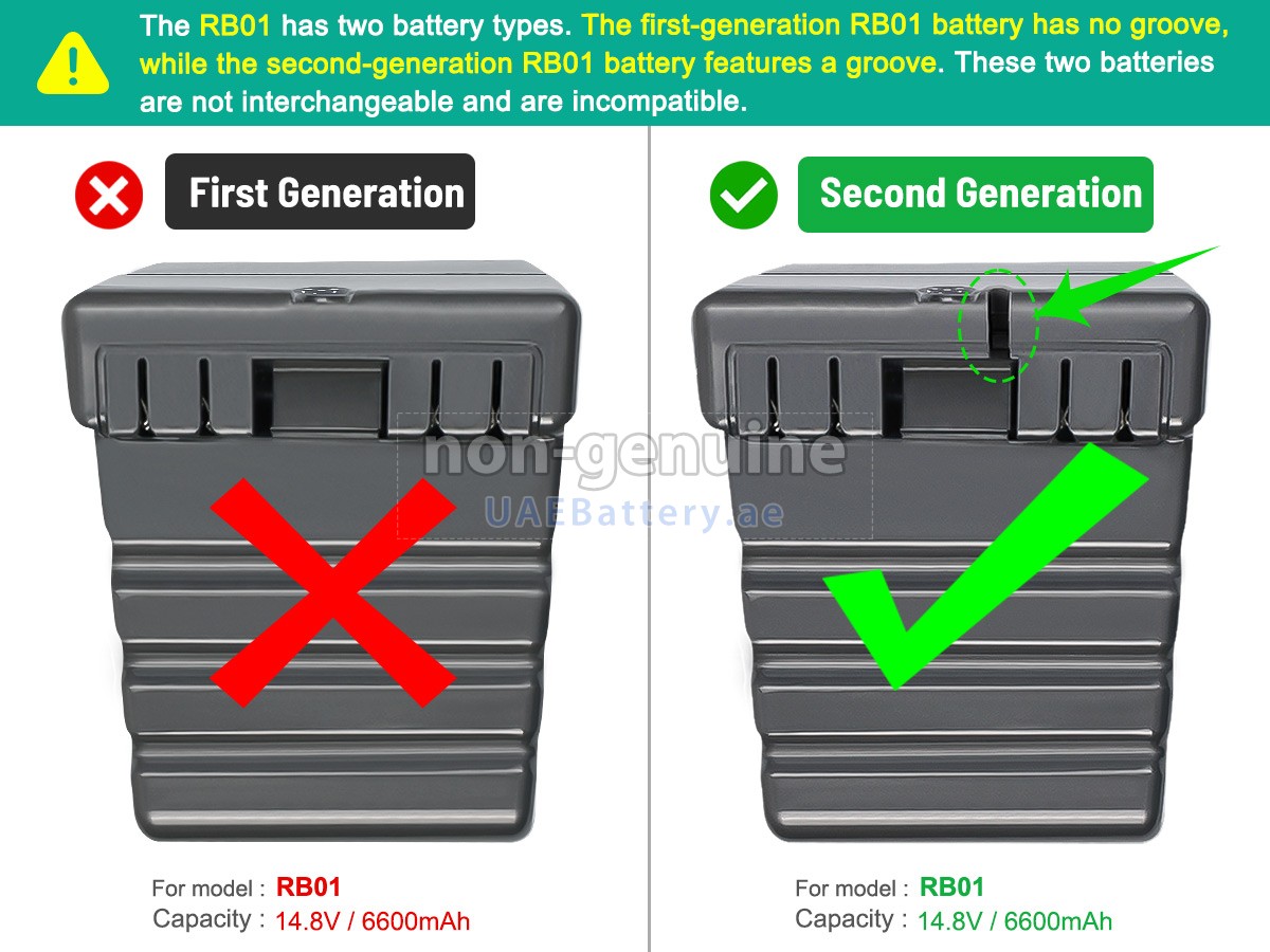 2 Compare the voltage and capacity of the battery with our Dyson RB01 battery, and check that the battery interface and shape are the same as the pictures on our website.