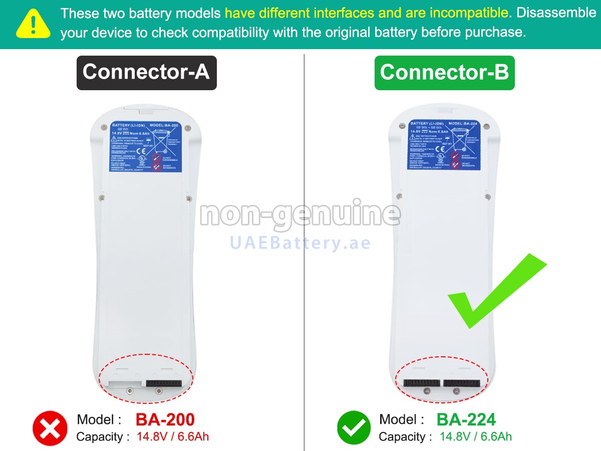 2 Compare the voltage and capacity of the battery with our Inogen ONE G2 PORTABLE OXYGEN CONCENTRATOR battery, and check that the battery interface and shape are the same as the pictures on our website.