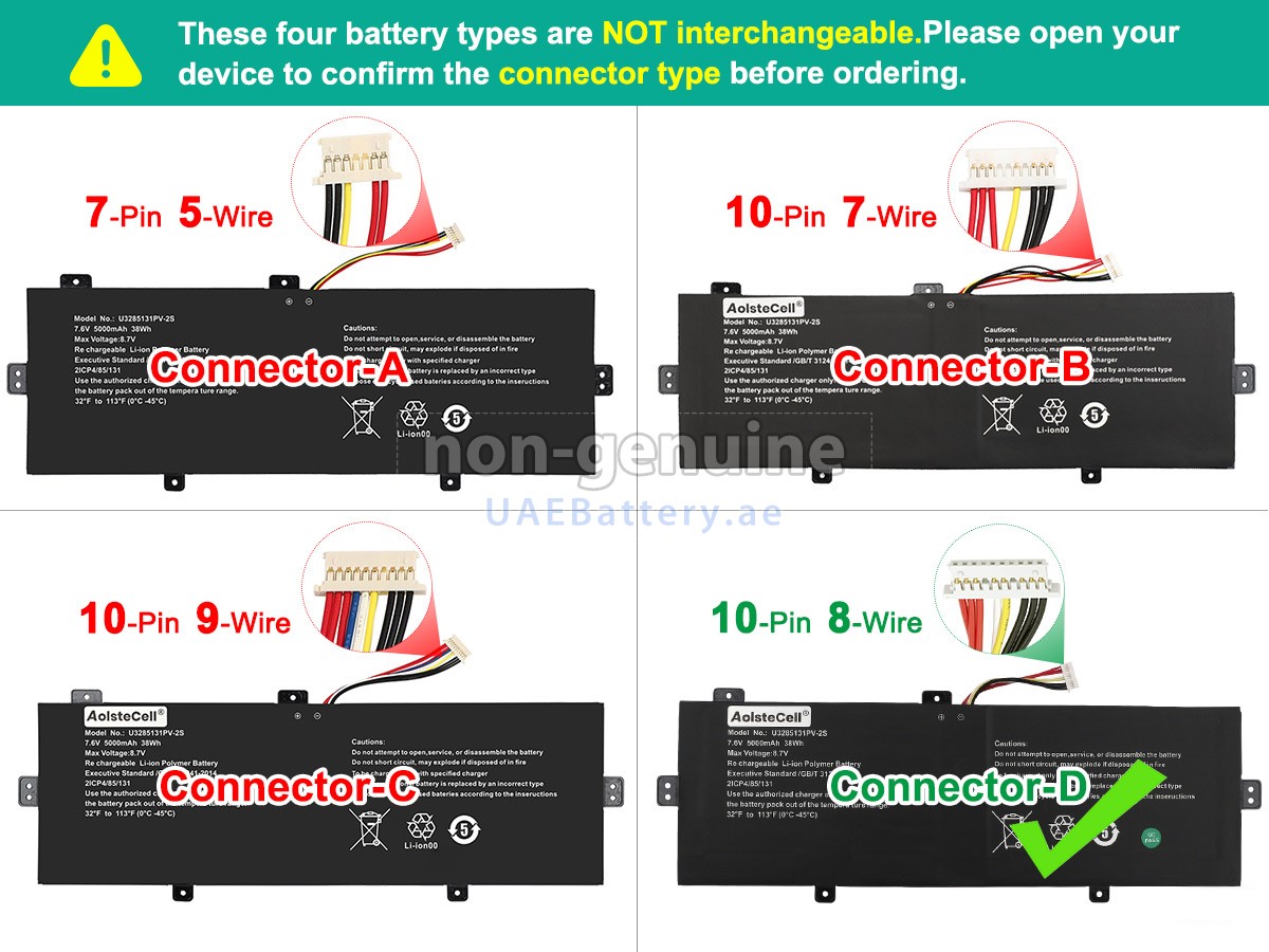 Before placing an order, please open your computer to make sure that your U3285131PV-2S battery looks the same as the picture and is wired with【 7 holes and 5 lines】. 2 cells | 38Wh For Jumper U3285131PV-2S-9LINES