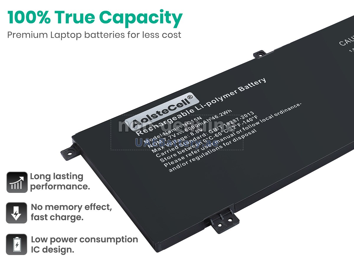 A: All of the batteries sold on UAEbattery are genuine OEM replacement batteries. They use the high quality battery cells and smart chips from famous factories, and the actual use effect is the same as the original battery, even higher than the original. In this way, the brand premium is eliminated, and the quality is not compromised. In fact, the original NC15U8 batteries are also assembled using different third-party accessories, but in the end, it affixed its own brand trademark on the battery. At UAEbattery, you can buy higher quality products at a more affordable price!