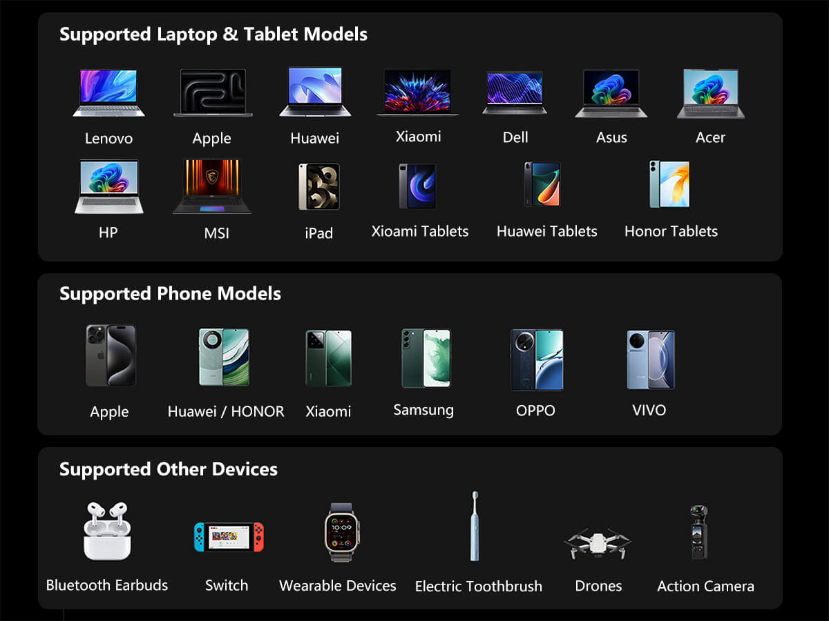 With up to 100W fast charging output, this power bank supports PD 3.0 and other fast-charge protocols, making it suitable for laptops, tablets and smartphones. It can charge a MacBook Air (M3) to 50% or an iPhone 17 Pro to 60% in just 30 minutes based on lab test results, saving you valuable time.