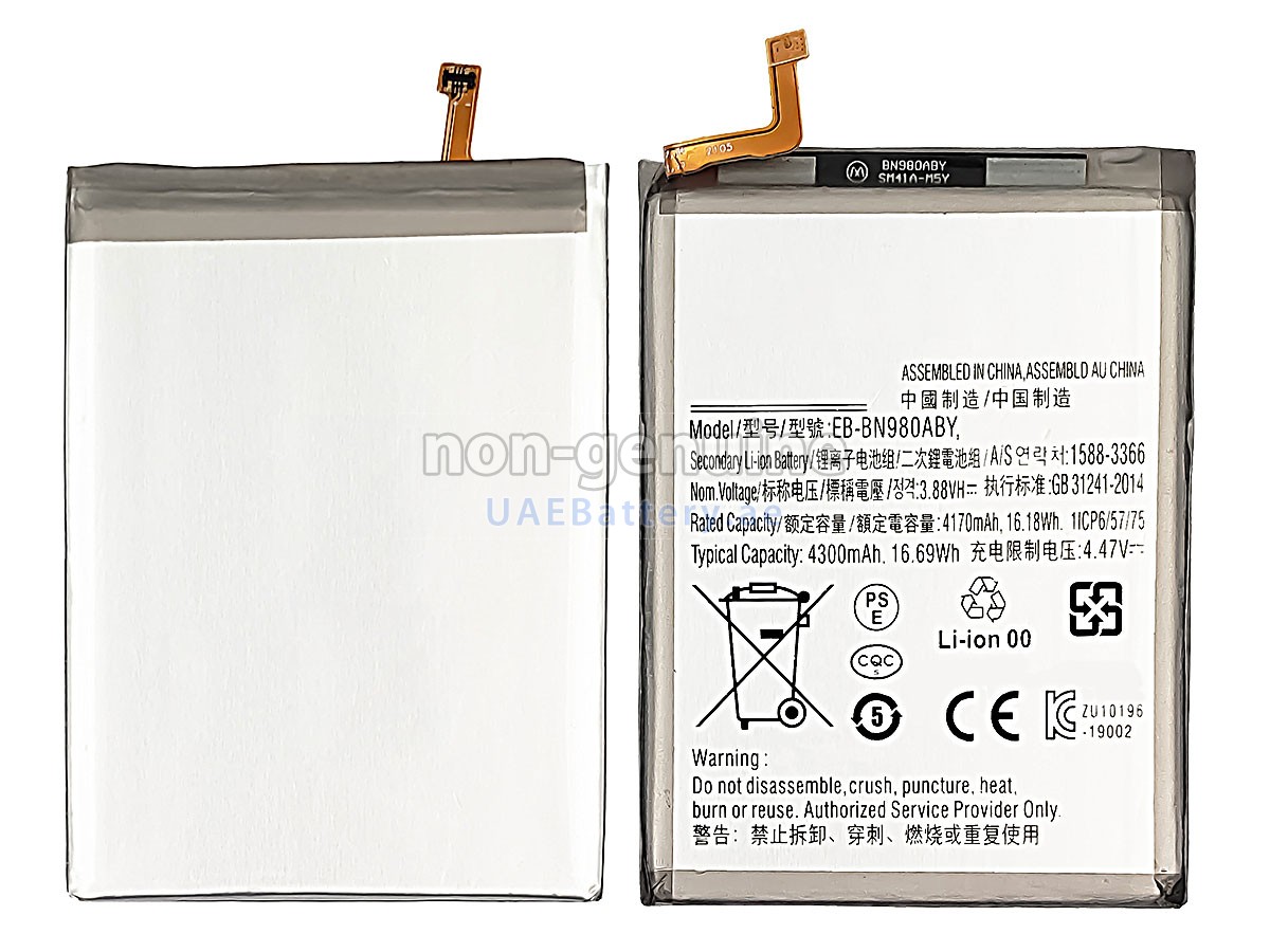 This Samsung EB-BN980ABU replacement battery is consistent with the original manufacturer's specifications and is 100% compatible with your Samsung device. It can match or exceed the original EB-BN980ABU battery in performance and user experience.