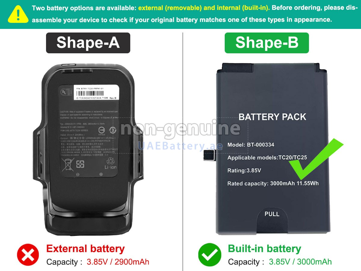 2 Compare the voltage and capacity of the battery with our Zebra BTRY-TC2X-PRPK1-01 battery, and check that the battery interface and shape are the same as the pictures on our website.