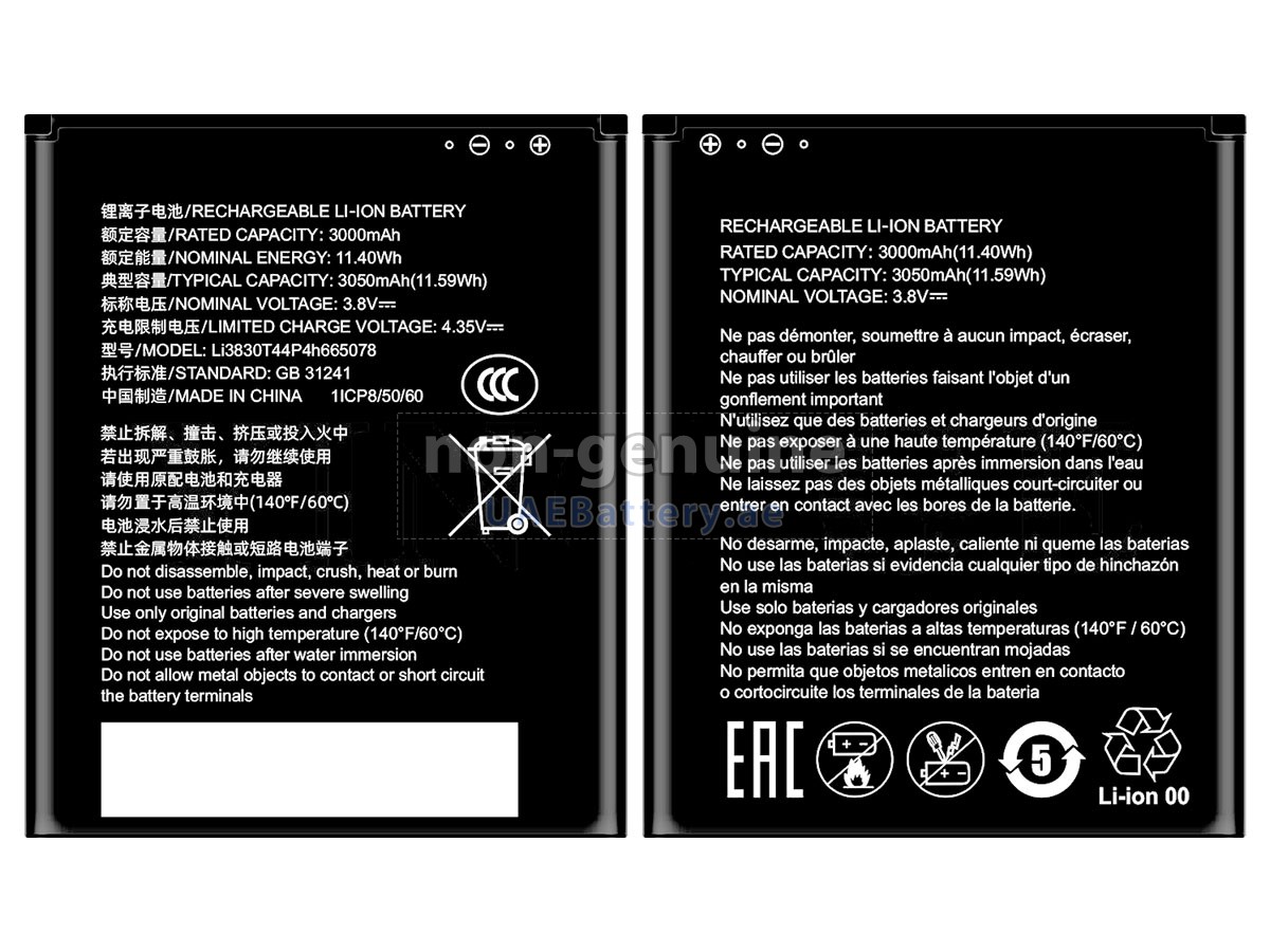 Although the after-sales failure rate of UAEbattery batteries is very low, we still offer your battery for ZTE LI3830T44P4H665078 a one-year warranty. During the warranty period, as long as any problem with your battery, you can contact us, and we will give you replacement or repair as appropriate. Please click "Warranty Policy" for more details.